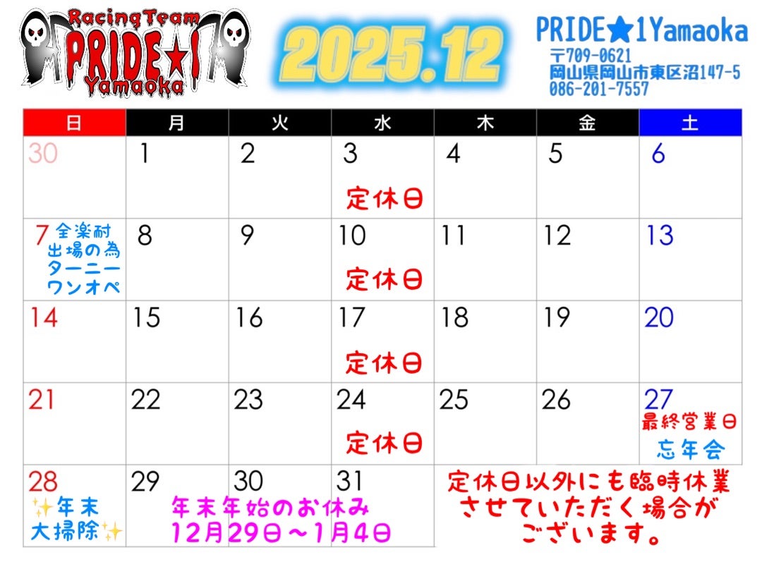 12月もPRIDE★1は楽しく頑張って営業しま〜す‼️